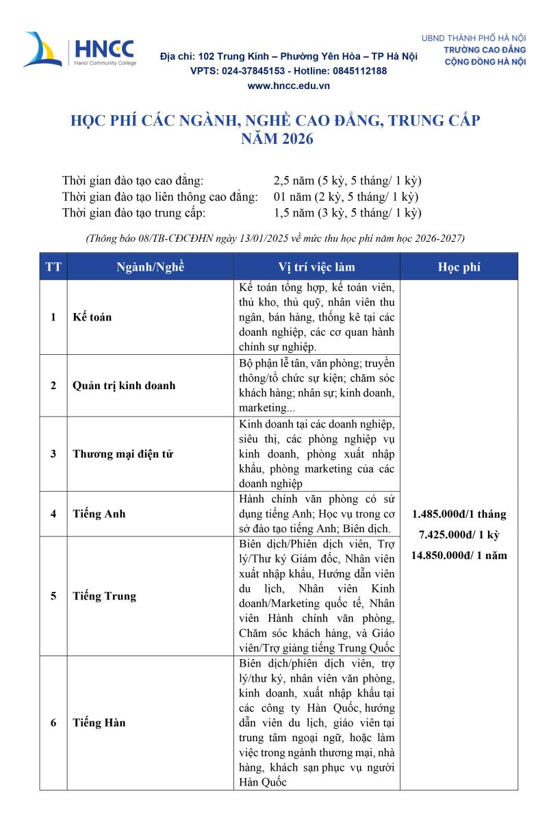 HỌC PHÍ NĂM HỌC 2026 - 2027