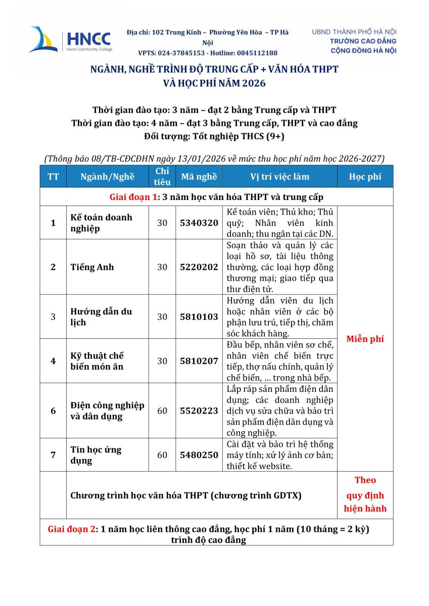 HỌC PHÍ VĂN HÓA THPT VÀ TRUNG CẤP NĂM HỌC 2026 - 2027 Tags: đăng ký ngay Bài viết liên quan: HỌC PHÍ CAO ĐẲNG NĂM HỌC 2026 - 2027