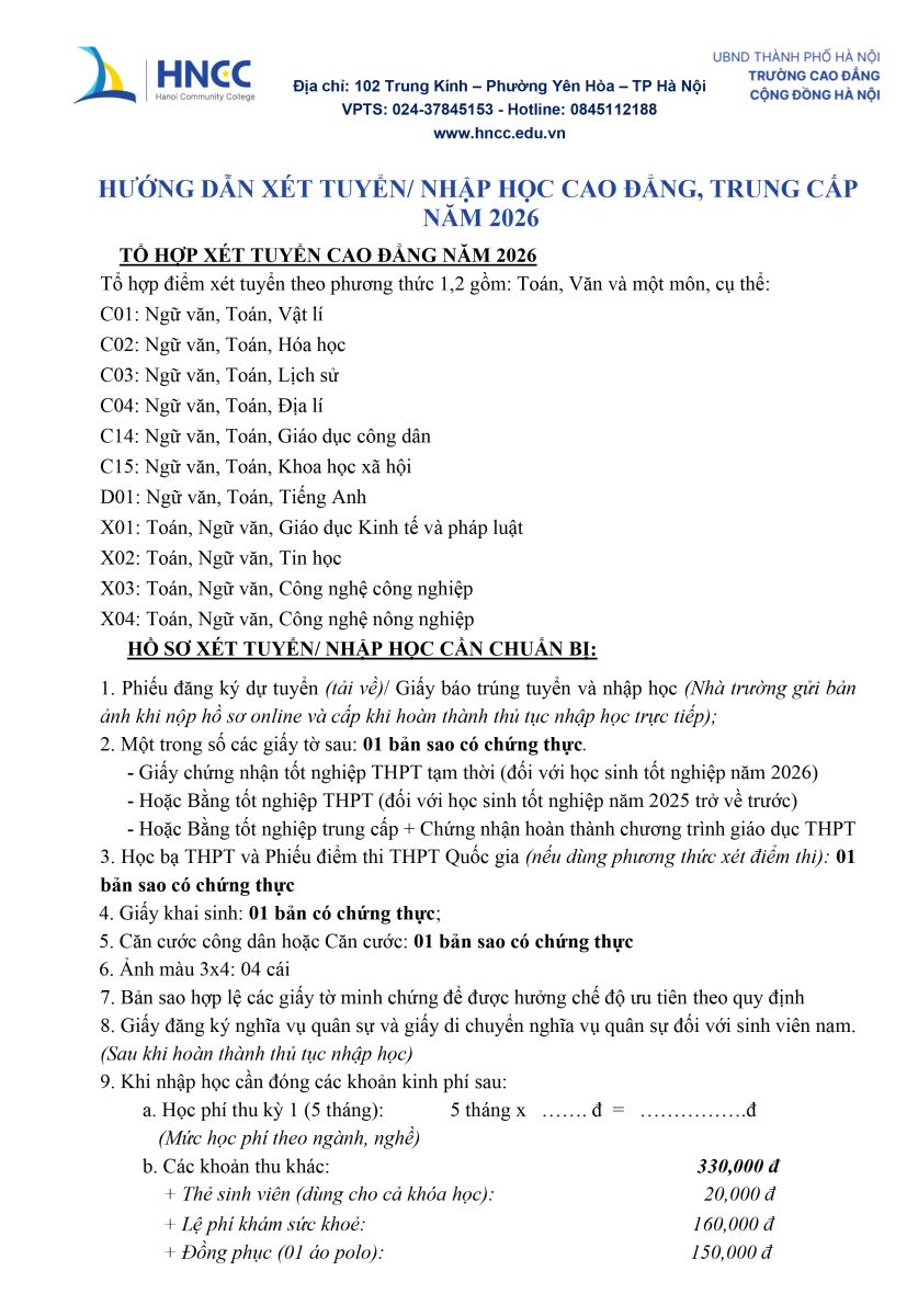 Hướng dẫn xét tuyển và Nhập học Cao đẳng, Trung cấp năm 2026 Xét tuyển online: Tại đây Xem học phí Hệ Cao đẳng: Tại đây Tải phiếu Xét tuyển: Tại đây Tags: Bài viết liên quan: Hướng dẫn thủ tục xét tuyển và Nhập học lớp 10 + nghề năm học 2026 - 2027