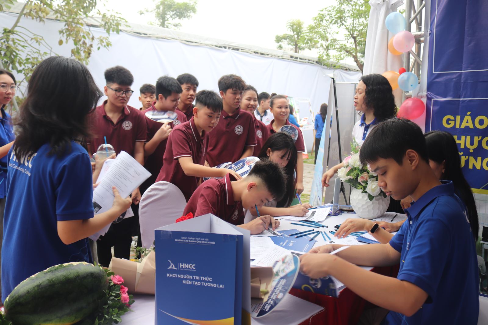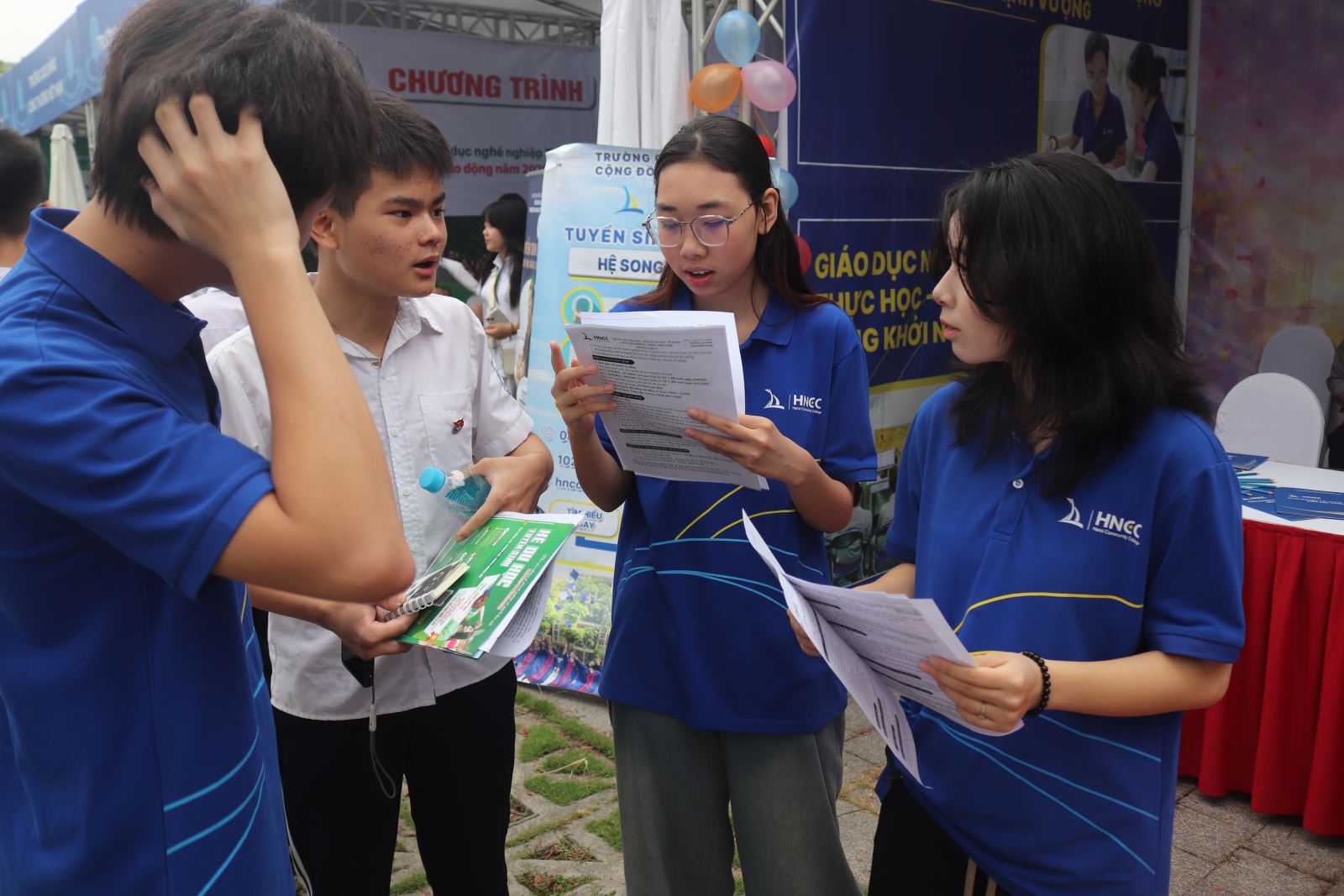 Tại gian hàng của Trường Cao đẳng Cộng đồng Hà Nội đã thu hút đông đảo học sinh tham quan, tìm hiểu. Tại gian hàng các bạn học sinh, sinh viên được tư vấn hướng nghiệp trực tiếp cùng chuyên gia; trải nghiệm mô hình học tập thực tế và giao lưu cùng thầy cô và học sinh, sinh viên nhà trường.